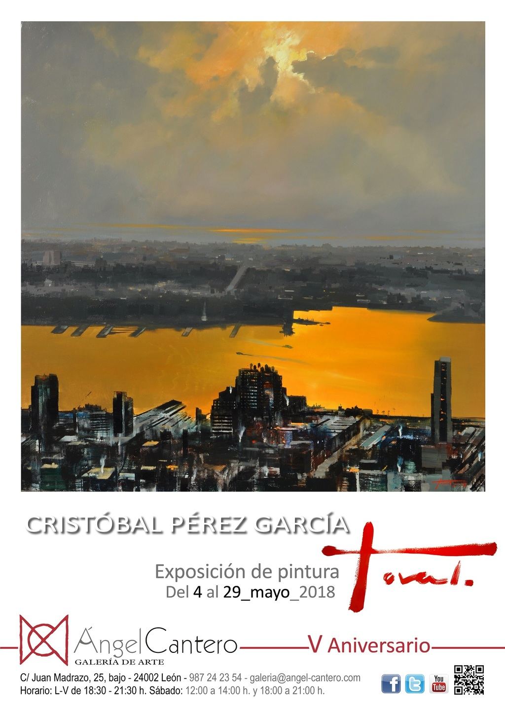 El viernes día 4 de abril celebraremos el V ANIVERSARIO de la galería, coincidiendo con la inauguración de la exposición de pintura del artista internacional Cristóbal Pérez García - Toval, con la asistencia del artista.