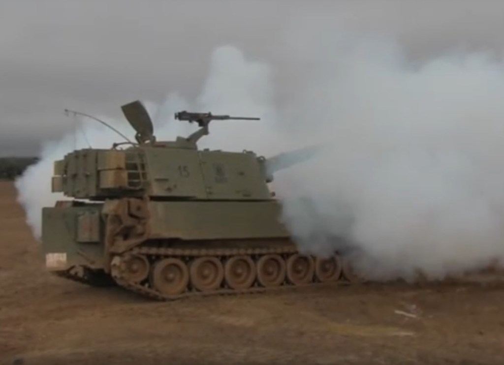 M-109 del Grupo de Artillería de Campaña ATP X en acción. (Fotograma: http://www.outono.net/)