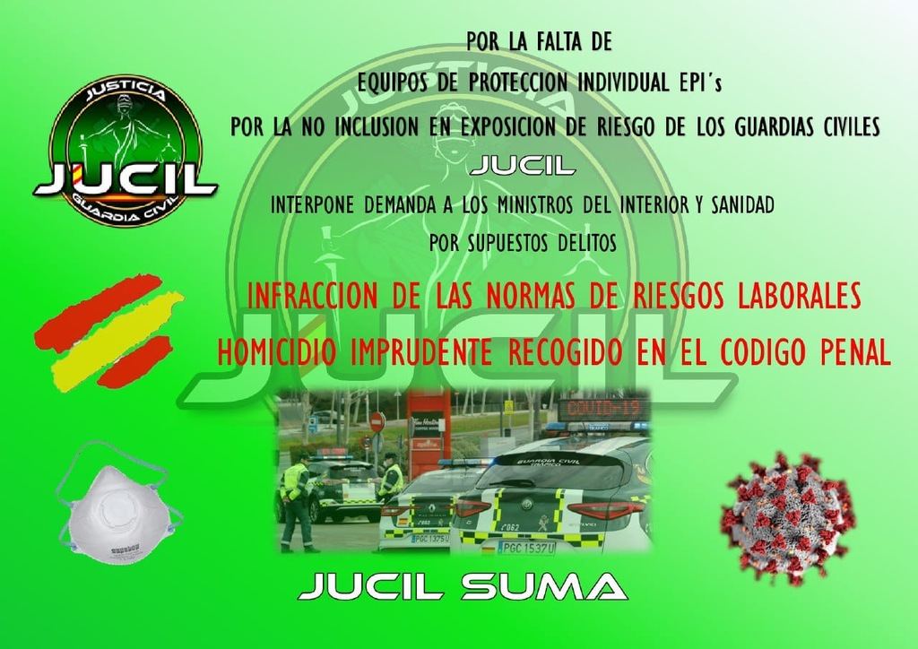 Según datos del propio Ministerio del Interior, 239 Guardias Civiles están contagiados por Covid-19, de los cuales cuatro han sufrido un fatal desenlace a causa de esta enfermedad. Contagios que para JUCIL se deben directamente a la falta de material de protección que ha sufrido la Guardia Civil al ser considerada dentro del plan de actuación contra el Coronavirus como personal de baja exposición a la enfermedad.