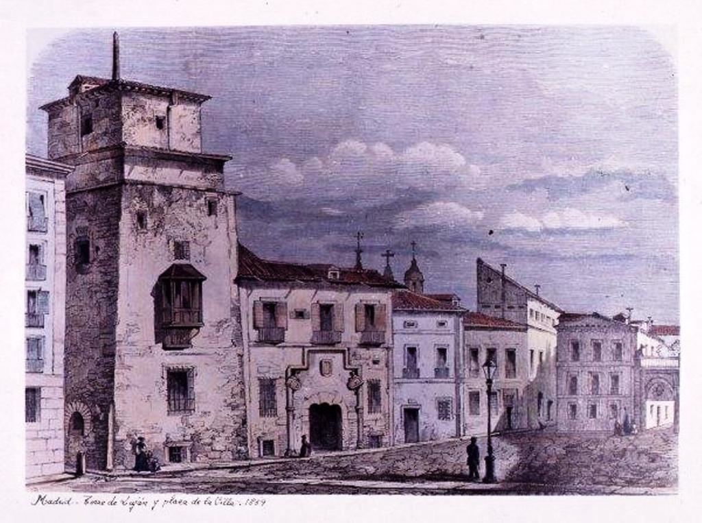 'Torre de Luján y Plaza de la Villa 1859' en Madrid, de Jesús Evaristo Casariego. (Foto: https://artedemadrid.wordpress.com/)