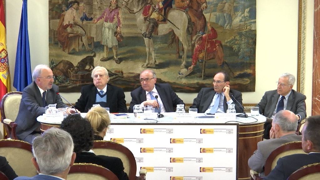Debate en el Círculo Cívico de Opinión. Jorge de Esteban, catedrático de Derecho Constitucional y presidente del Consejo Editorial del diario EL MUNDO; Emilio Lamo de Espinosa, catedrático de Sociología y presidente del Real Instituto Elcano; Santiago Muñoz Machado, catedrático de Derecho Administrativo y Josep Maria Vallès, catedrático de Ciencias Políticas y de la Administración. (Foto: https://www.circulocivicodeopinion.es/)