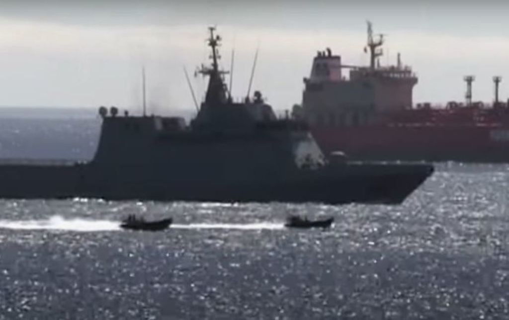 El verano pasado un buque de guerra español es obligado a dejar las aguas de Gibraltar por varias lanchas rápidas de la Royal Navy.