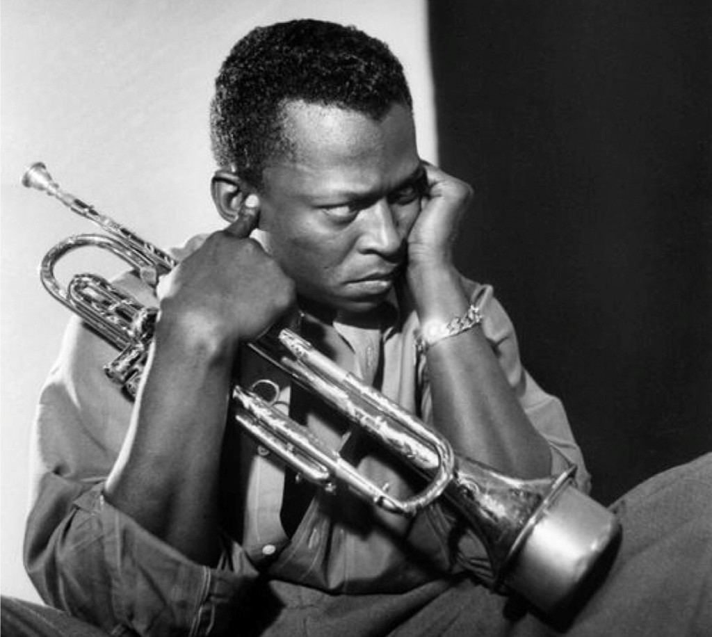 Aunque compuso algunos temas magníficos, el trompetista Miles Davis no pasará a la historia como un compositor del tamaño de Duke Ellington. Pero su estilo fue tan importante y cambiante (algunos le llamaron “el Picasso del jazz”) que trascendió las áreas del estilo para alcanzar las de la creación y la composición más absolutas. Su disco Kind of Blue (1959) es considerado por muchos críticos e historiadores no solo la cima más alta de la historia del jazz, sino de toda la música del siglo XX. Fue grabado en dos sesiones, en apenas diez horas. Aquella mañana histórica de la primera grabación, Miles Davis se obsesionó con una idea: lo más importante es la frescura y la improvisación. Como contó el pianista Bill Evans (uno de los integrantes fundamentales de esa mítica banda), Miles les había pedido a los músicos que no ensayaran, lo que ocasionó que ellos llegaran al estudio algo desconcertados y sin saber muy bien lo que iban a hacer. La frescura, la improvisación y la intuición de un creador puro. Un día a Miles le dio por ponerle una sordina de acero a su trompeta, y por acercarla al micrófono hasta casi tocarlo. El experimento le gustó tanto que lo incorporó a su estilo en un gran número de grabaciones posteriores. La prolífica discografía de Miles Davis se desarrolla en los subgéneros del bebop, el cool, el hardbop y, finalmente, en la fusión con el rock y el funk, en la que se utilizaron instrumentos eléctricos.