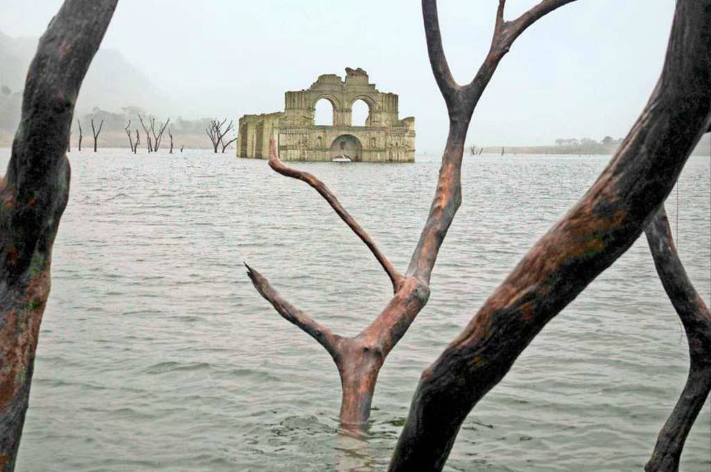 La iglesia, que habría sido levantada por Bartolomé de las Casas y un grupo de frailes en el siglo XVI, quedó al descubierto cuando las aguas del embalse de Nezahualcóyotl bajaron más de 23 metros, en la localidad de Quechula, en el Estado de Chiapas, Méjico.