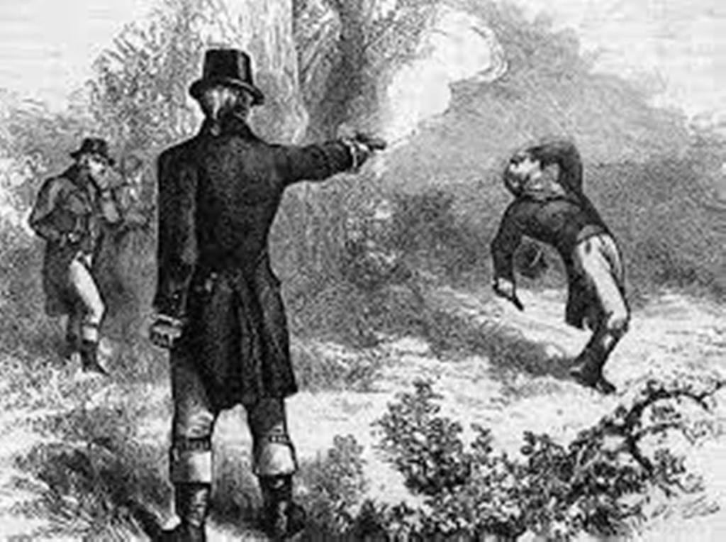 Duelo entre Alexander Hamilton y Aaron Burr el 11 de julio de 1804, del que el primero resultó muerto al día siguiente. (Ilustración: https://us.leskanaris.com/).