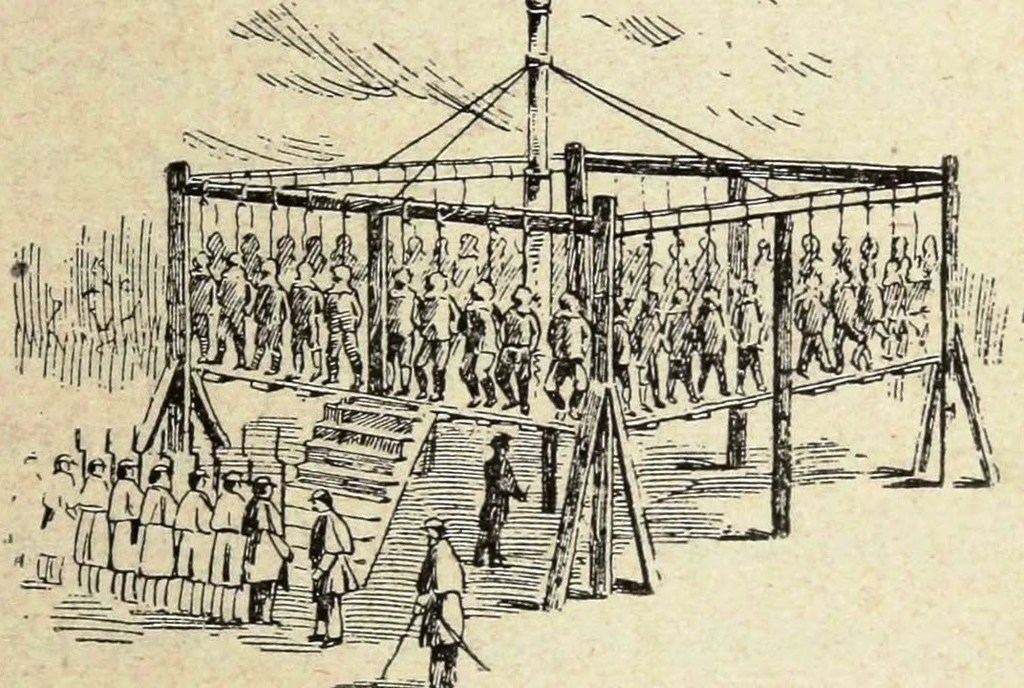 El 5 de Noviembre de 1862 la comisión militar constituida había juzgado a 392 prisioneros y condenado a 307 a la pena capital. De la lista el presidente Lincoln solo aprobó la sentencia de muerte de 39 (luego se quedó en 38, al demostrarse la inocencia en un caso), por acusaciones probadas de asesinatos y violaciones de mujeres. El 26 de Diciembre fueron ejecutados en la plaza pública de Mankato, un acto considerado como la “America’s greatest mass execution”.