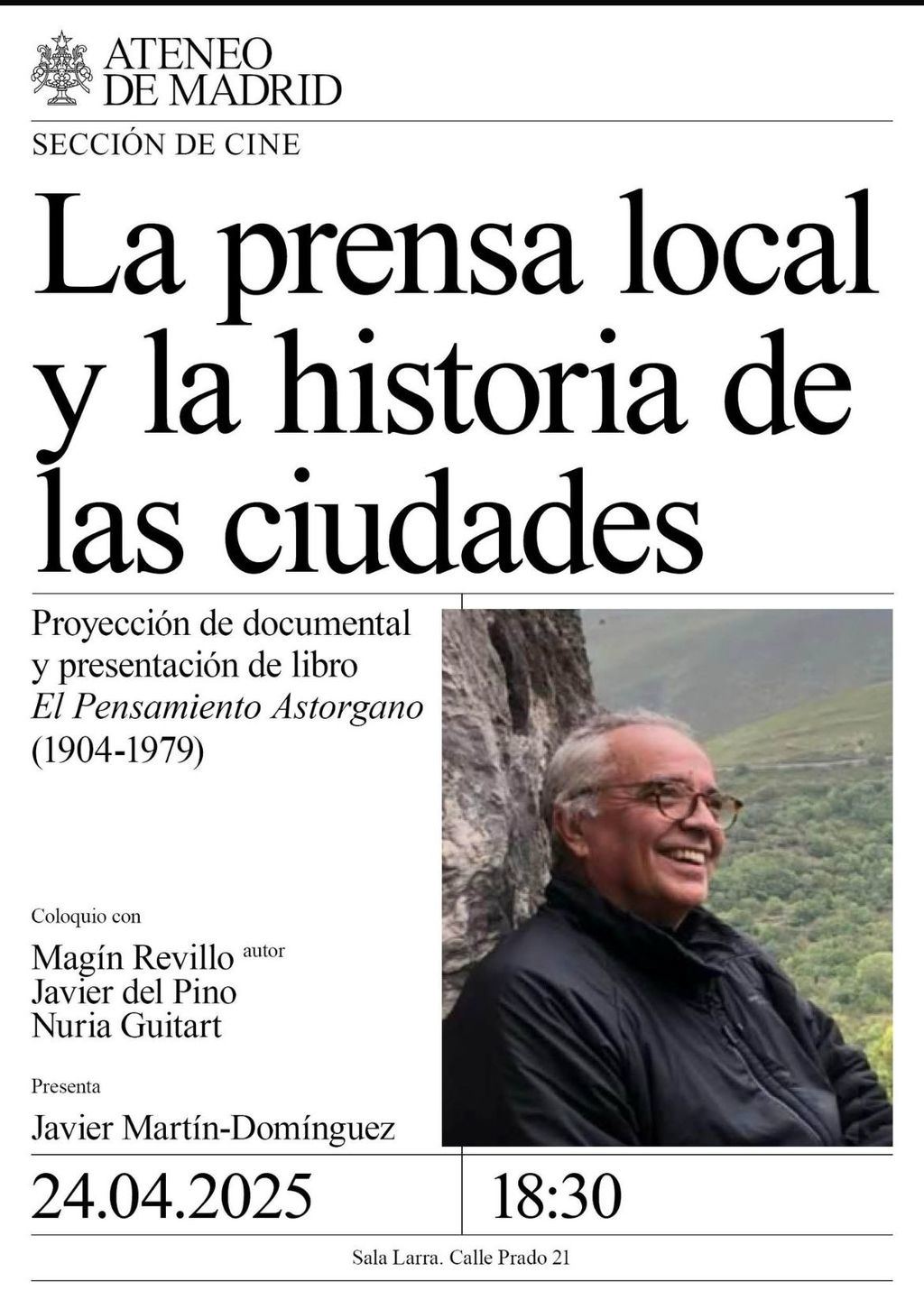 El próximo día 24 de abril a las 18:30 interesante acto cultural en el Ateneo de Madrid, Sección de Cine, en torno a "la prensa local y la historia de las ciudades". Presentará el acto su director Javier Martín-Domínguez y en el mismo intervendrán Magín Revillo, autor del documental y el libro "El Pensamiento Astorgano (1904-1979). Historia impresa de la ciudad", Javier del Pino y Nuria Guitart. (...)