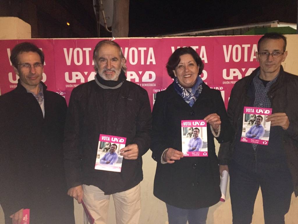 Unión Progreso y Democracia en León reunió a sus candidatos al Congreso y al Senado para hacer un acto simbólico de pegada de carteles en el espacio habilitado en Sta. Nonia, entre el Conservatorio y la Biblioteca Pública