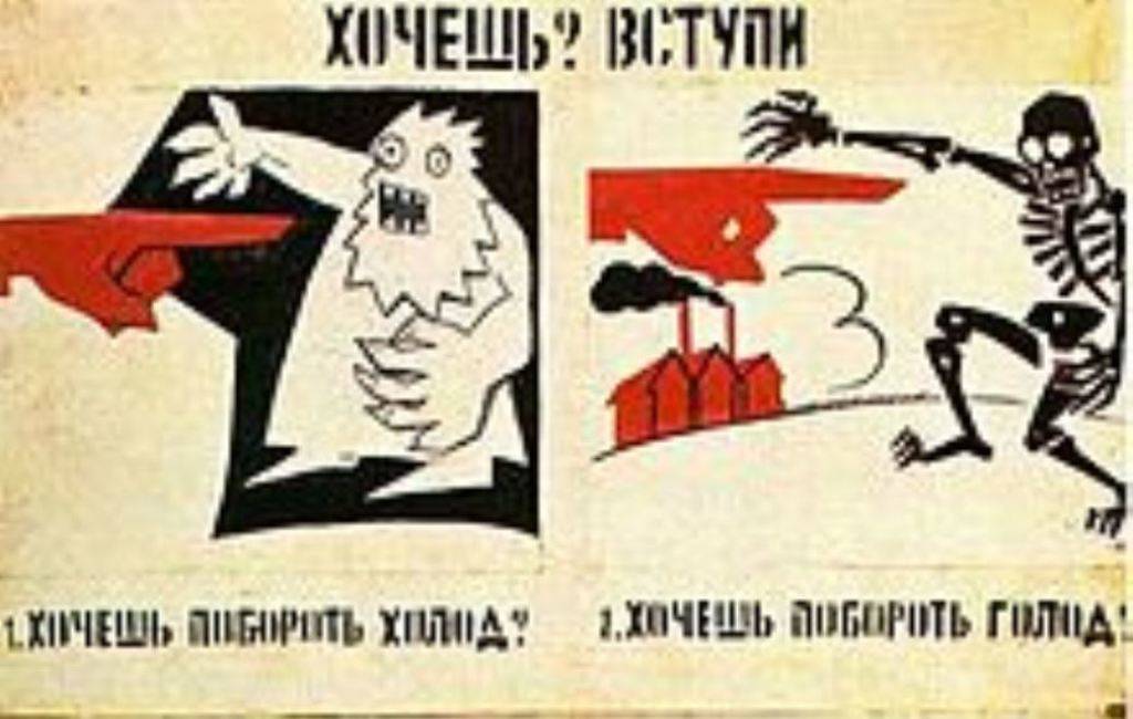 Cartel de agitprop, creado por el poeta y pintor Vladímir Mayakovski. (Wikipedia):